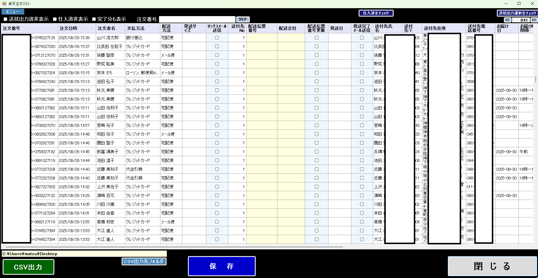 ECモールの注文を取り込み一瞥で内容が分かるようにしたリストです。